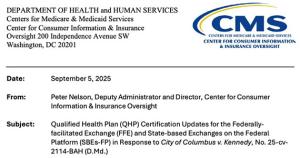 ...Pursuant to an order of the United States District Court for the District of Maryland in City of Columbus v. Kennedy, No. 25-cv-2114-BAH (D. Md.), the implementation of certain provisions of the recently promulgated Marketplace Integrity and Affordability Final Rule, 90 Fed. Reg. 27074 (June 25, 2025), has been stayed while the litigation remains pending. These provisions were scheduled to go into effect on August 25, 2025.