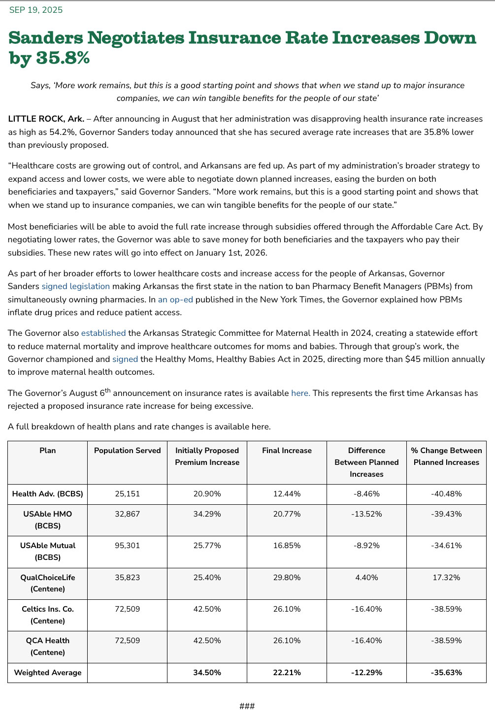 ...Cut to a few weeks ago, when I reported that a local reporter, Benjamin Hardy, had used FOIA requests to acquire internal email correspondence within the AR Insurance Dept. & Commerce Dept. showing that the state plans on responding to the impending expiration of the enhanced ACA premium tax credits in a very positive way: By implementing a robust Premium Alignment policy to maximize the effectiveness of the remaining federal subsidies...