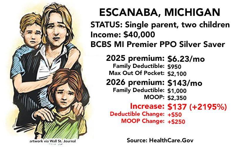 • A single mother with 2 young children living in Escanaba earning $40K/year
