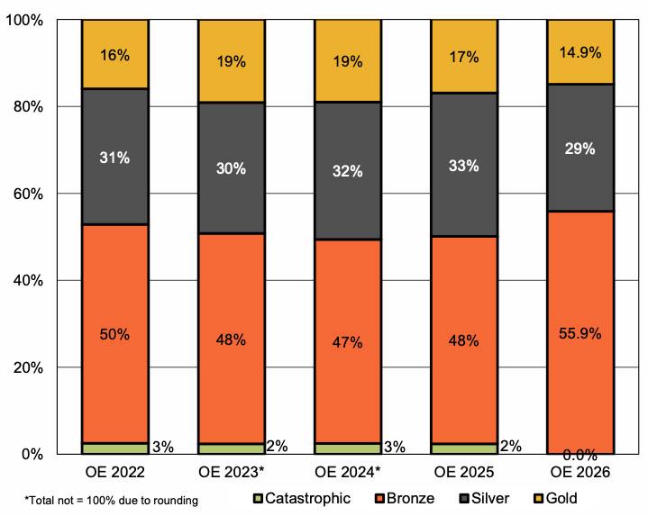 Enrollment in Bronze plans (which have much higher deductibles & co-pays) increased from 50% in 2025 (if you include Catastrophic plans, which aren't being offered in MN this year) to 56%, while enrollment in Silver & Gold plans dropped from a combined 50% to 44%.
