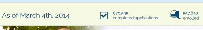 ...as of 9 a.m. today, 1,162,795 New Yorkers have completed their applications and 812,033 have enrolled for coverage since the launch of the Marketplace on October 1, 2013.