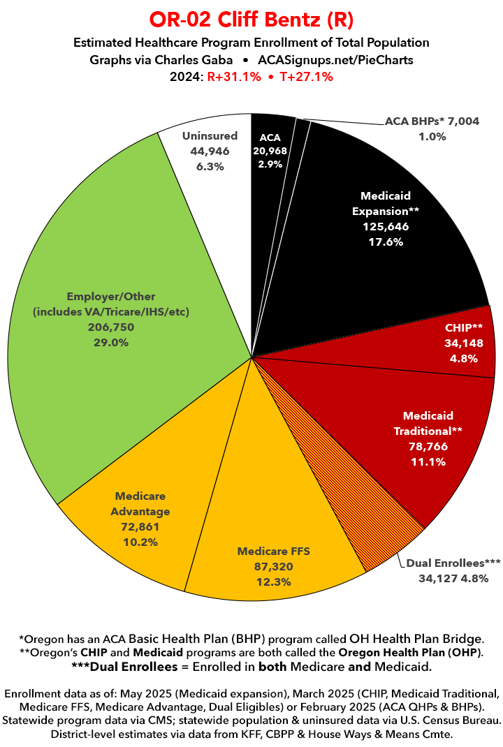 UPDATE 7/10/25: I've updated the web versions of the graphics with the most up-to-date enrollment data I have access to. The black sections w/the ⚠️ symbol are those most at risk of losing healthcare coverage due to H.R. 1, the "One Big Beautiful Bill Act" (aka the #MAGAMurderBill).