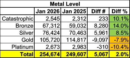 UPDATE 2/04/26: This isn't technically a final report (that likely won't come out for another month or so), but since the Maryland exchange is one of a handful which publishes monthly enrollment reports, I figured I'd compare their January 2026 report against the one from January 2025.
