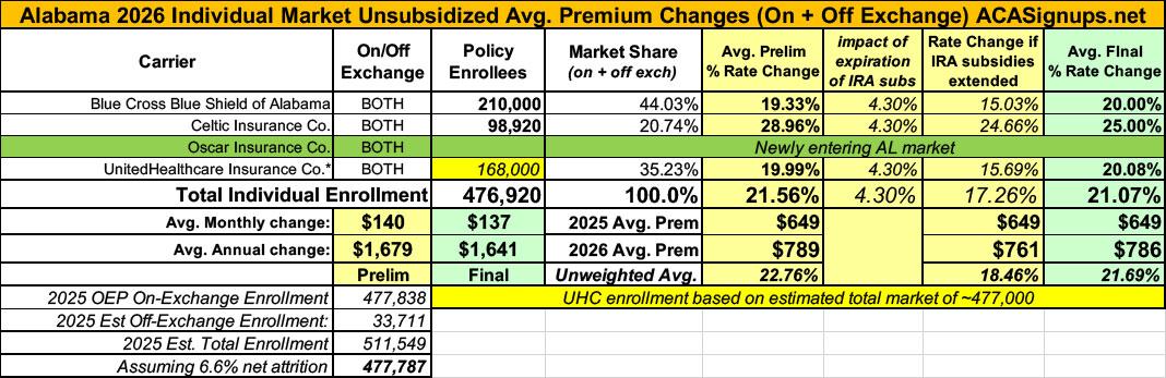 2026 FINAL Gross Rate Changes - Alabama: +21.1%; Oscar entering market (updated)