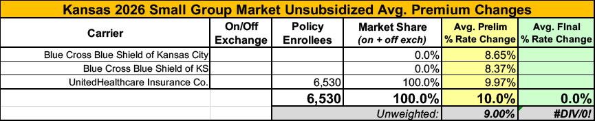 (Aetna/CVS is dropping out of the individual market in all states; I estimate they have around 35,000 enrollees in Kansas who will have to find a different carrier for 2026)