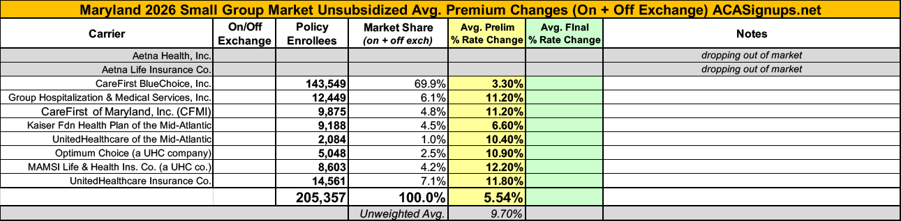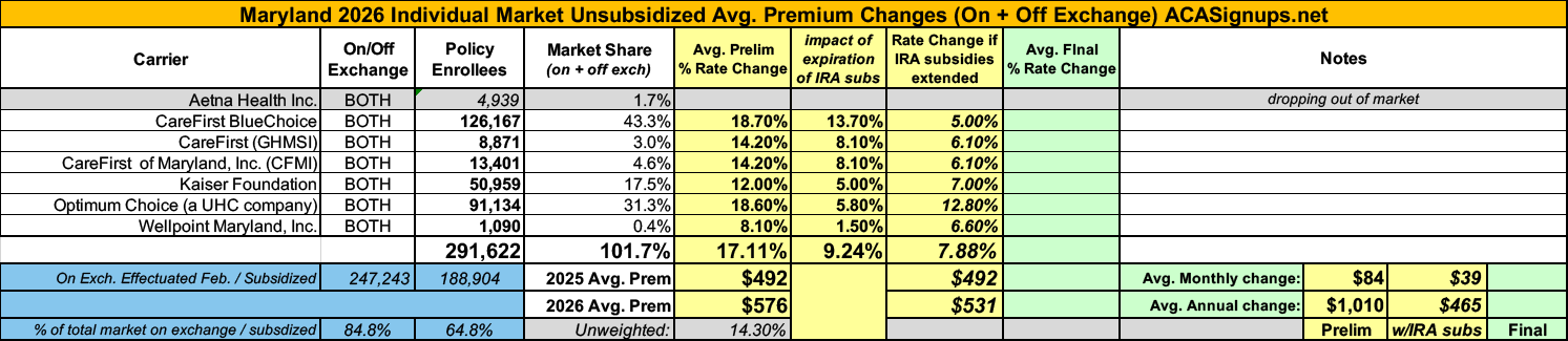 UPDATE 9/19/25: The Maryland Insurance Administration has published their final 2026 rate decisions for the individual market: