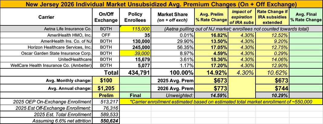 UPDATE 10/27/25: With just 5 days to go before the launch of the 2026 Open Enrollment Period, the New Jersey Dept. of Banking & Insurance has published their final, approved 2026 rate filing decisions: