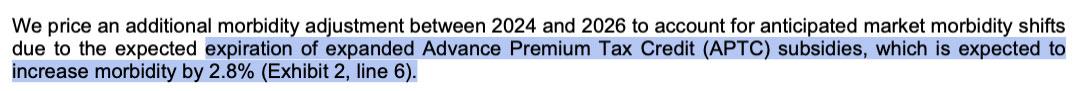 An adjustment was applied to account for additional anticipated changes in morbidity due to the expiration of enhanced premium subsidies and other regulatory changes.
